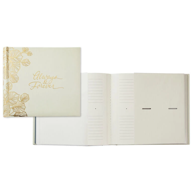 Keep memories of your wedding day secure in this beautifully designed photo album that features an elegant gold leaf design and “Always & Forever” in gold script on the cover. Reminisce when you look at 200 of your favorite pictures displayed in this lovely album.