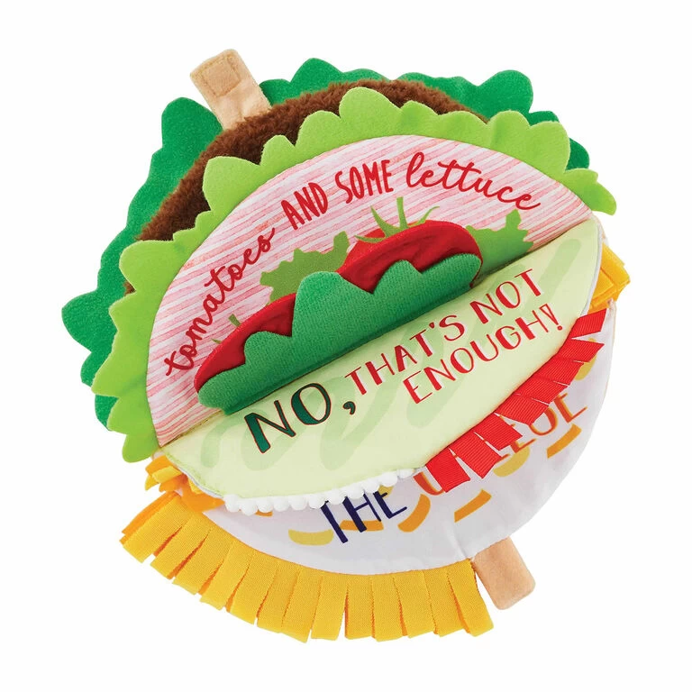 What’s in a taco? Read this plush book with your little one to discover the key toppings that make a taco complete. Taco-shaped, toddler-safe book features tactile pages shaped like all the toppings that build a taco! Makes a fun, interactive gift for toddlers.