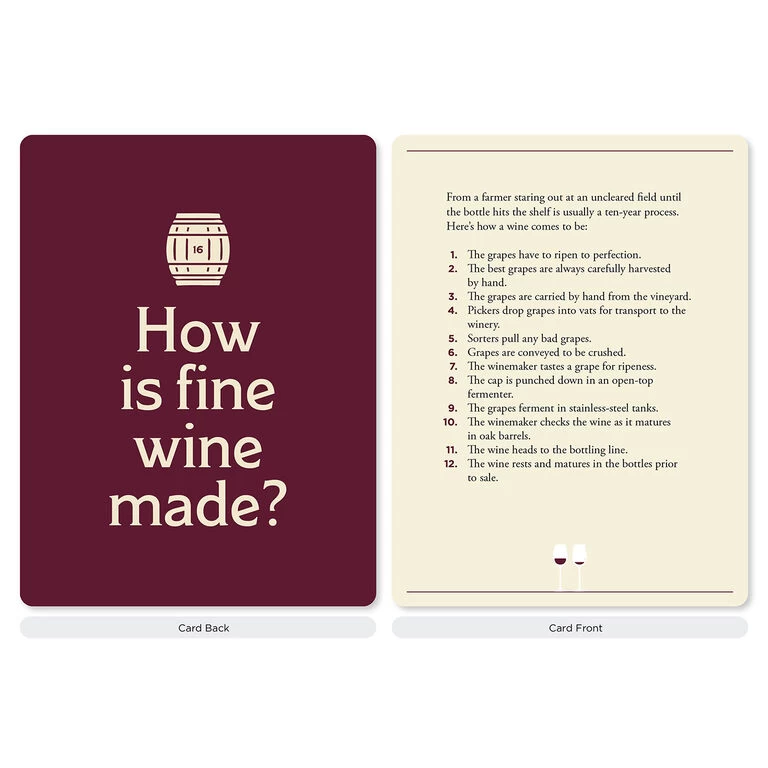 - Workman Publishing Wine Lover’s Card Deck includes 50 cards in a box.